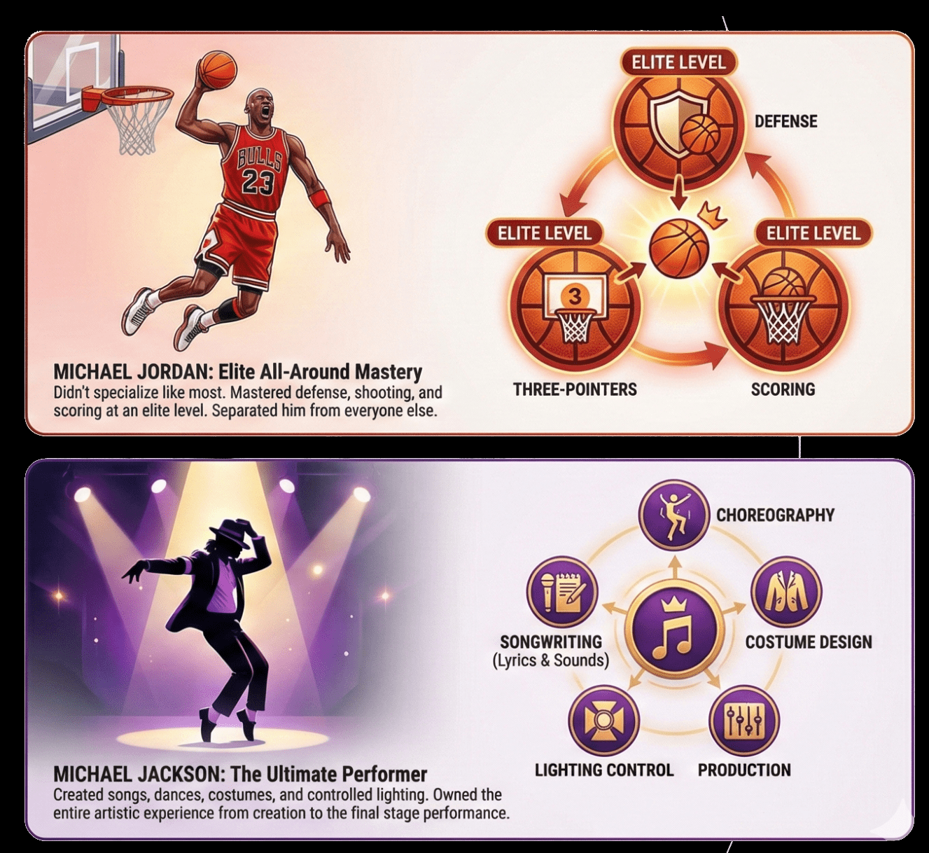 Michael Jordan didn’t specialize like most NBA players (defense, three-pointers, or scoring). He mastered all three at an elite level. That’s what separated him from everyone else.